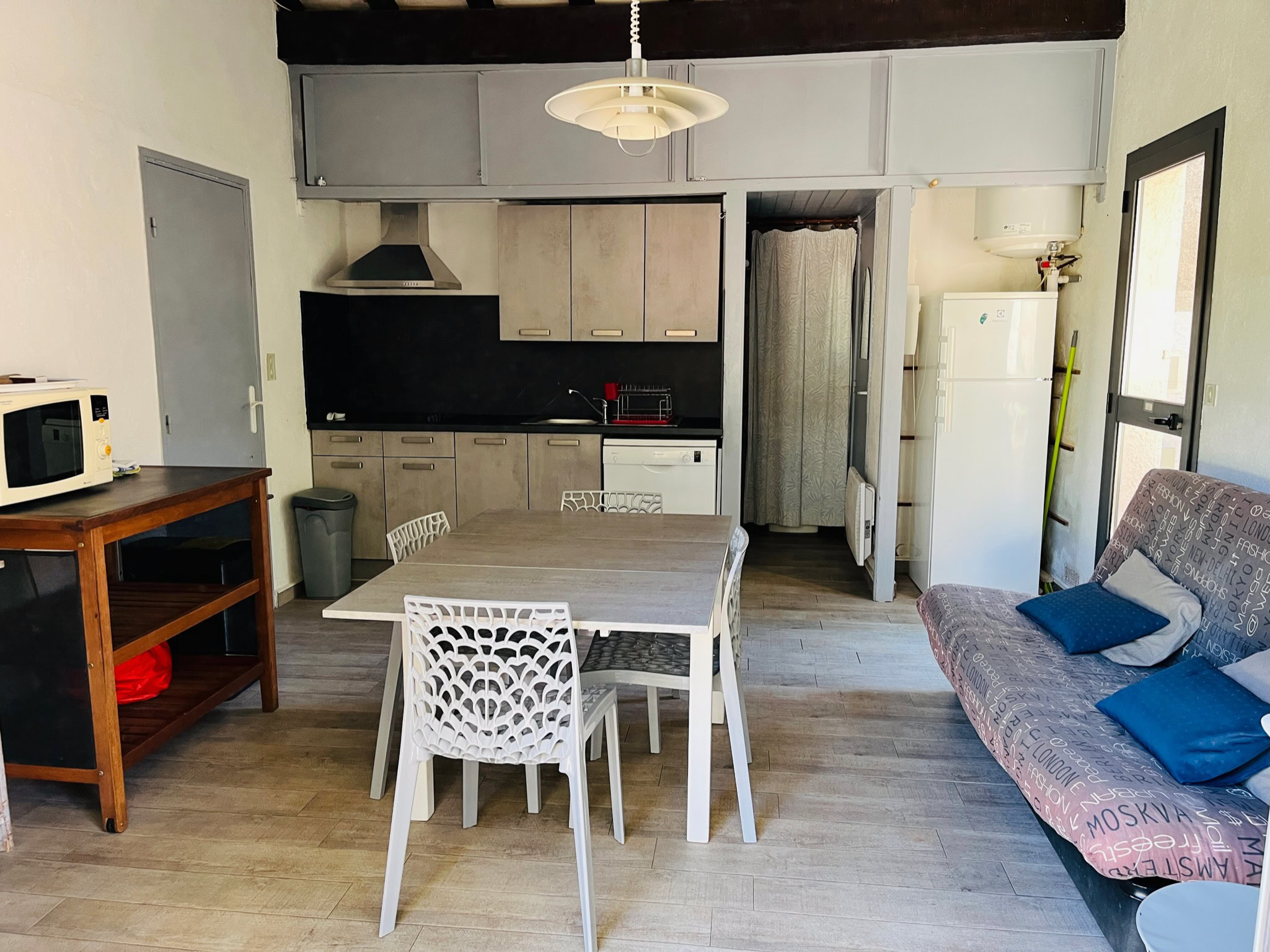 La maison est équipée de radiateurs électriques, table, fer à repasser, aspirateur, plancha électrique.