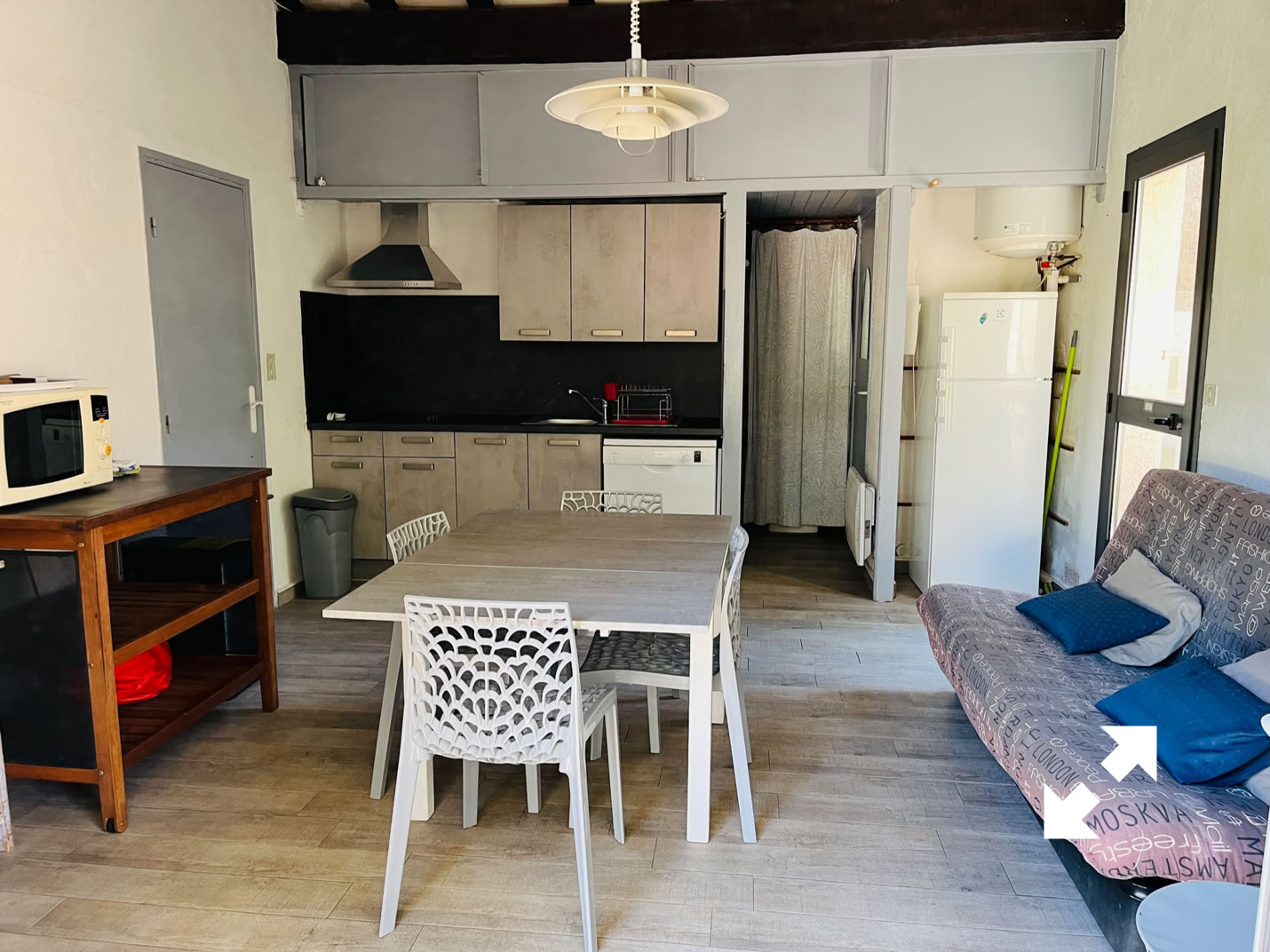 La maison est équipée de radiateurs électriques, table, fer à repasser, aspirateur, plancha électrique.